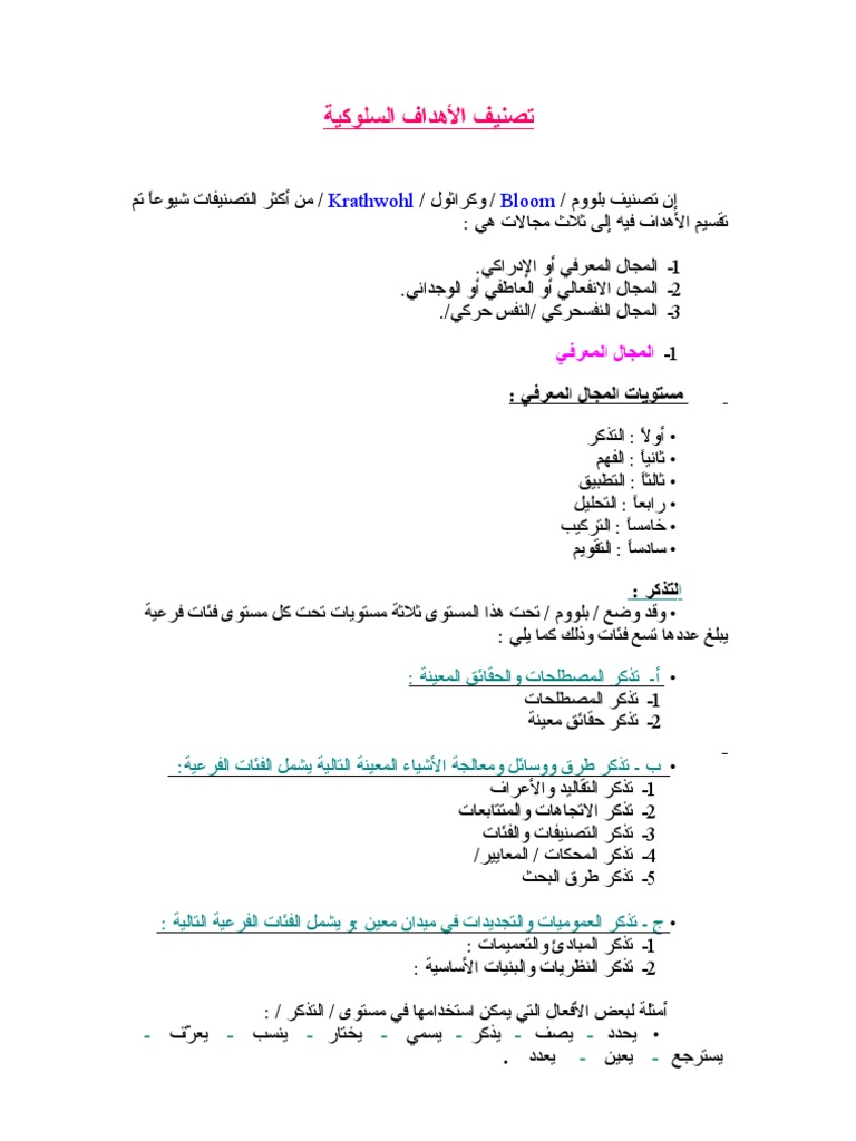 الأهداف التعليمية المجال المعرفي The Cognitive Domain