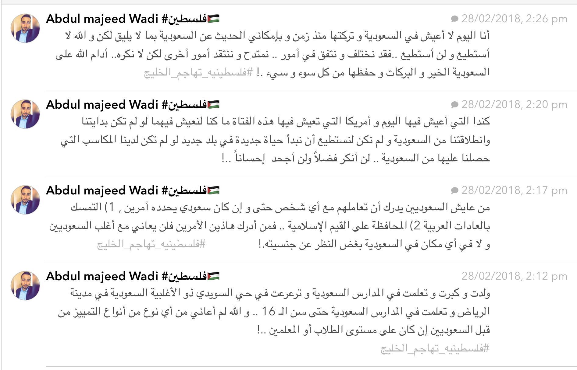 هيلة المشوح على تويتر لم نكن الفلسطينيون لنعيش في أمريكا أو كندا لو لم تكن بدايتنا من السعودية وبالمكاسب التي حصلنا عليها منها من أصدق ماقرأت فلسطينيه تهاجم الخليج Https T Co B4gp74wcxa