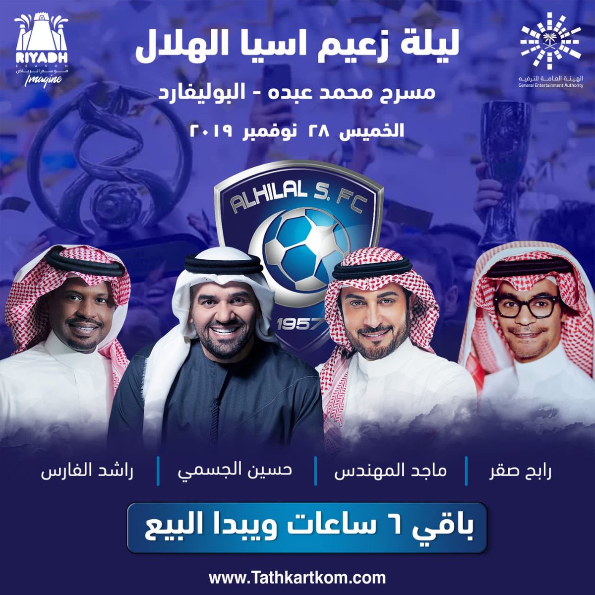 Rotanamusic On Twitter مفعلين التنبيهات باقي ٦ ساعات ويبدأ بيع التذاكر ليلة زعيم آسيا الهلال الساعة 4 العصر بتوقيت السعودية Https T Co Bbupdfwslo سعر التذكرة ٥٠ ريال موسم الرياض Riyadhseason Alhilal Fc Rabehsaqer