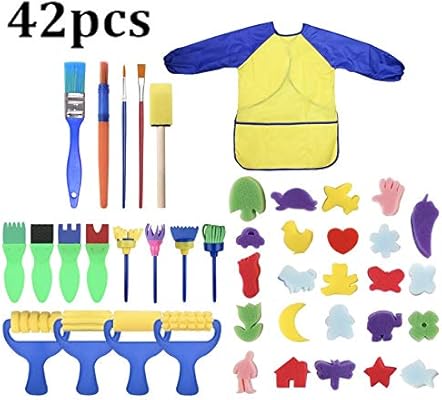 طقم فرش الرسم الاسفنجي المبكر 42 قطعة أدوات رسم اسفنجية للأطفال مع أطفال مقاوم للماء Amazon Ae