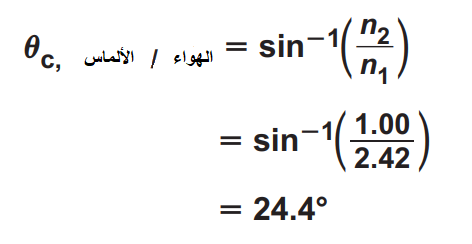 اذا كانت الزاوية الحرجة لقالب زجاجي 45 O فما معامل انكساره موقع فزورة