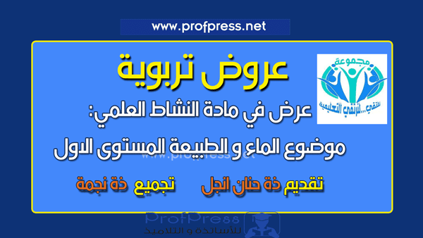 عرض في مادة النشاط العلمي موضوع الماء و الطبيعة المستوى الاول
