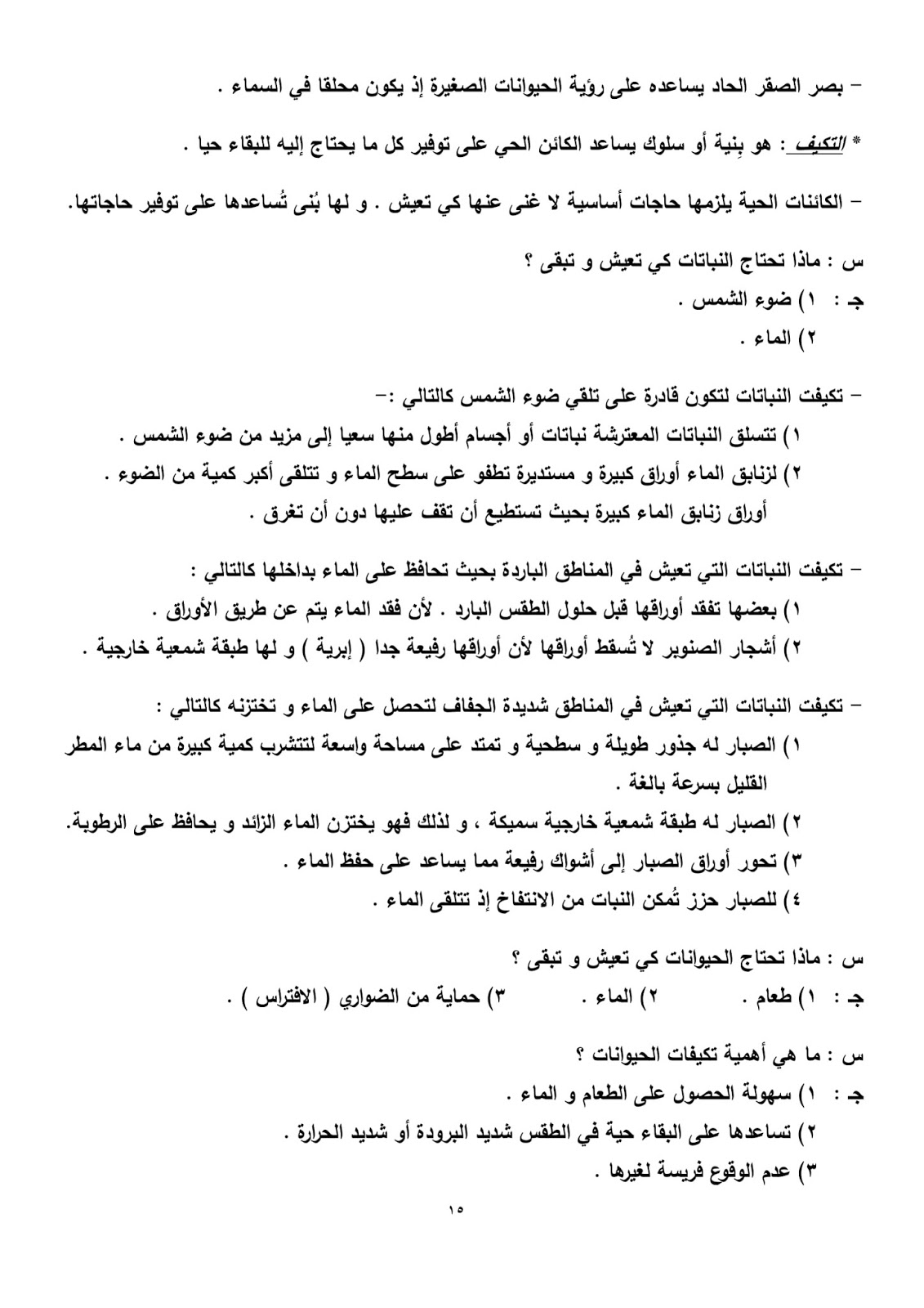 اوراق عمل علوم الصف الخامس حياه خلد الماء