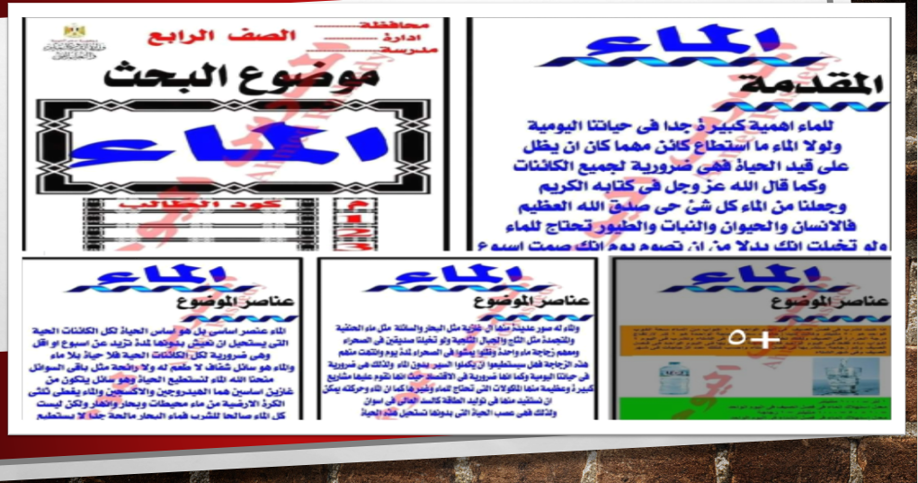 بحث موضوع الماء لطلاب المرحلة الابتدائية