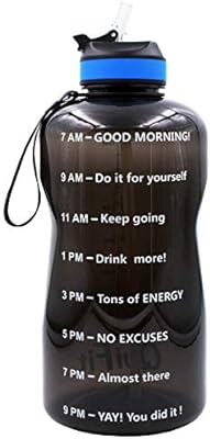زجاجة مياه هاف جالون من بيلديلايف 1 8 لتر 3 2 أونصة فم واسع مع غطاء من القش علامة تحفيزية للوقت لضمان شرب ما يكفي من الماء طوال اليوم 1 2 لتر لون أسود Amazon Ae