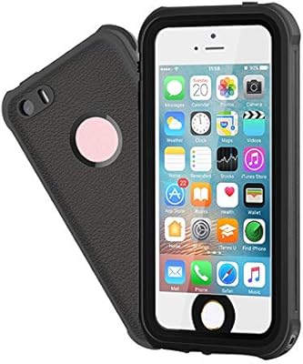 حافظة آيفون 5 5s Se مقاومة للماء من إيفن إيفين غطاء حماية ضد الماء ضد الماء ضد الأتربة والصدمات مع حامل الهاتف الخلوي ورق اختبار درجة الحموضة وقلم ستايلس وحزام طافي أسود Amazon Ae