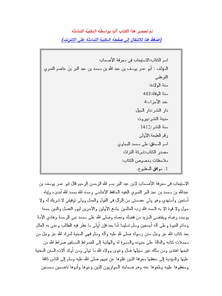 الاستيعاب في معرفة الأصحاب ابن عبد البر 1