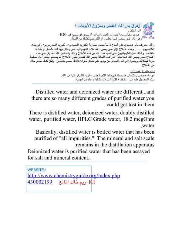 معلومات كيميائية On Twitter أسئلة كيمياء السلام عليكم ما الفرق بين الماء المقطر والماء المنزوع الأيونات عبر Sarona2525 معلومات كيميائيه كيمياء معلومات Ksa