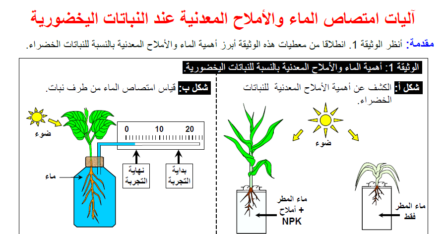 حاجة النبات الى الماء و الأملاح المعدنية موقع مدرستي