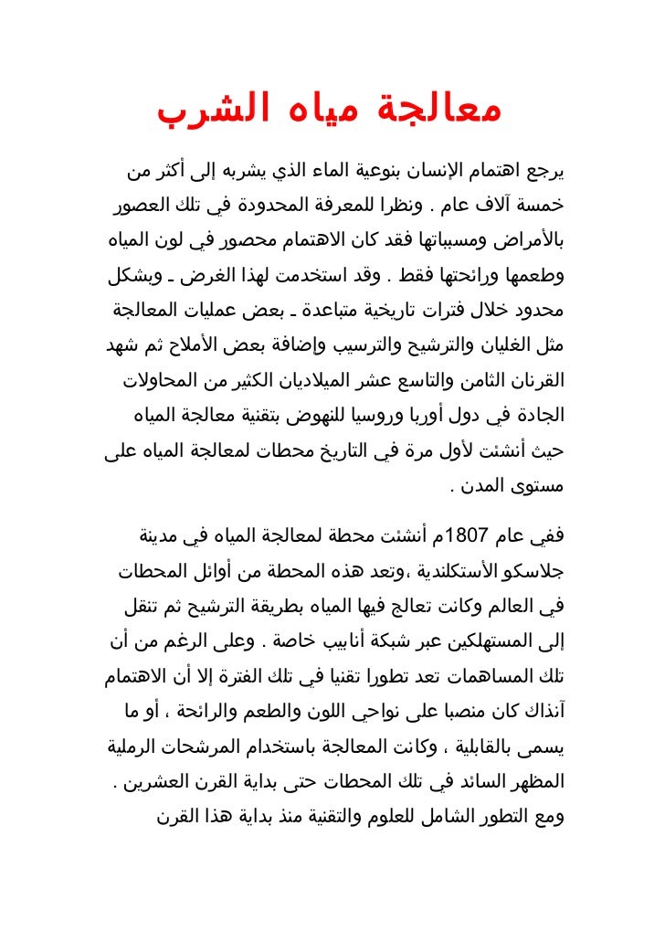 مقدمة بحث عن الماء للمرحلة الابتدائية يتضمن اهمية الماء عناصر بحث الماء كامل للطباعة موجز مصر