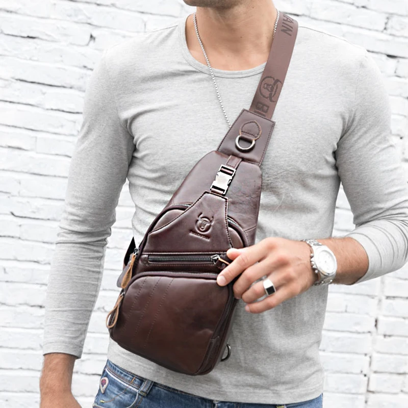 الرافعة الكتف حقيبة صدر للرجال عادية متعددة الوظائف جلد البقر والجلود مقاوم للماء حقيبة كروسبودي رحلة قصيرة 2019 رائجة البيع Lsh542 في حزم الخصر من حقائب وأمتعة على Buy Unohama Club Store
