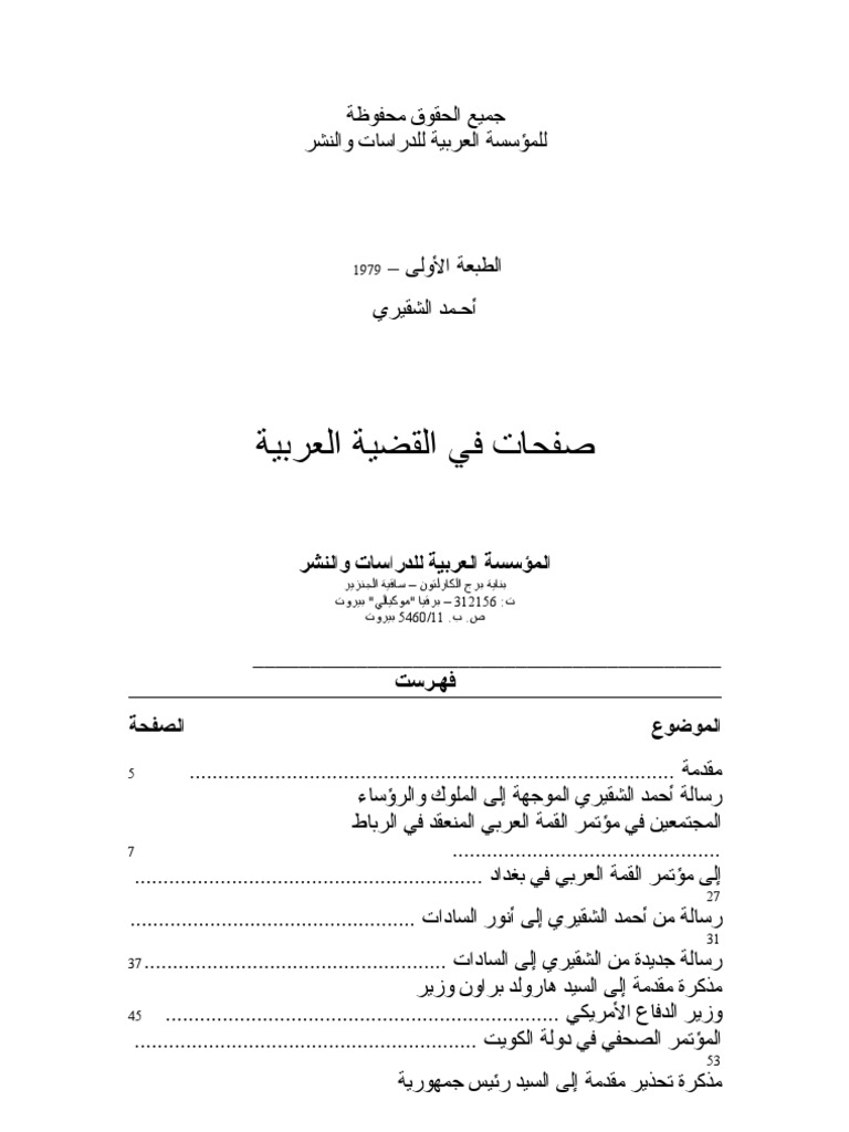 من القمة إلى الهزيمة مع الملوك والرؤساء للزعيم أحمد الشقيري المعركة شبكة انتفاضة فلسطين