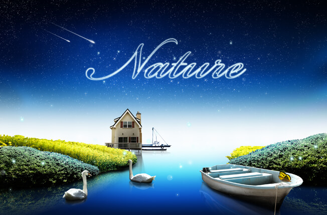 تحميل خلفية قارب وأوز في بحيره مفتوح Psd للفوتوشوب