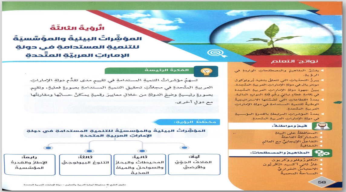 حل درس الرؤية الثالثة المؤشرات البيئية والمؤسسية للتنمية المستدامة في الدراسات الاجتماعية للصف العاشر الفصل الثاني