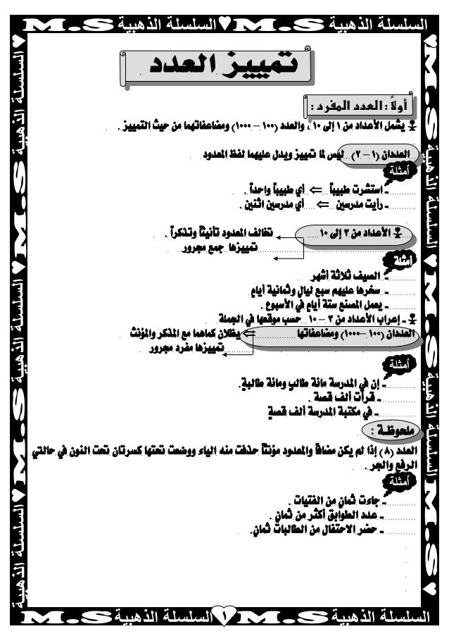 ملخص درس تمييز العدد للصف الثاني الاعدادي في ورقة واحدة أ محمد الجندي